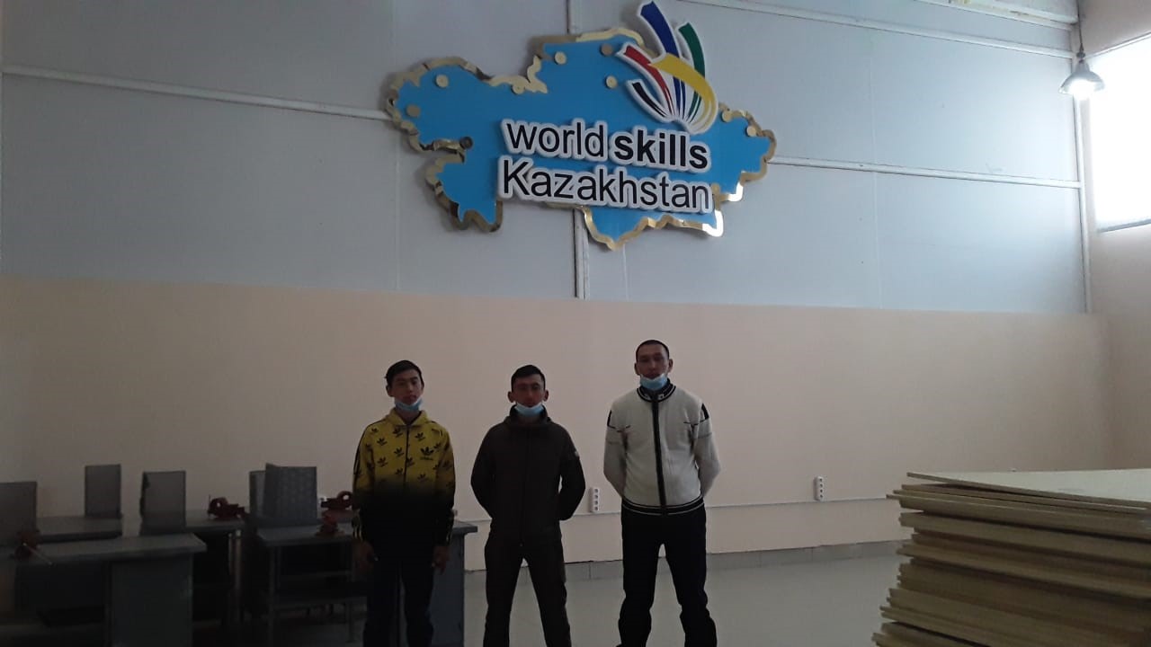 01.11.-12.11. 2021 оқу жылында өндірістік оқыту тәжірибе кезінде «Абай колледжі» КММ-де оқу шеберханасы. Д-12. 2-курс студенттері: Жақсыбекова Маржан.Кәрімов Нұрбол.Мыңбаев Қайыржан. Оқу шеберханада жұмыс істеу барысында.