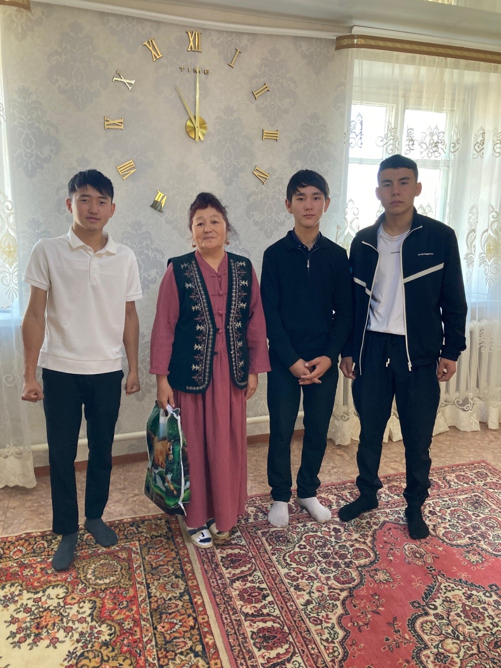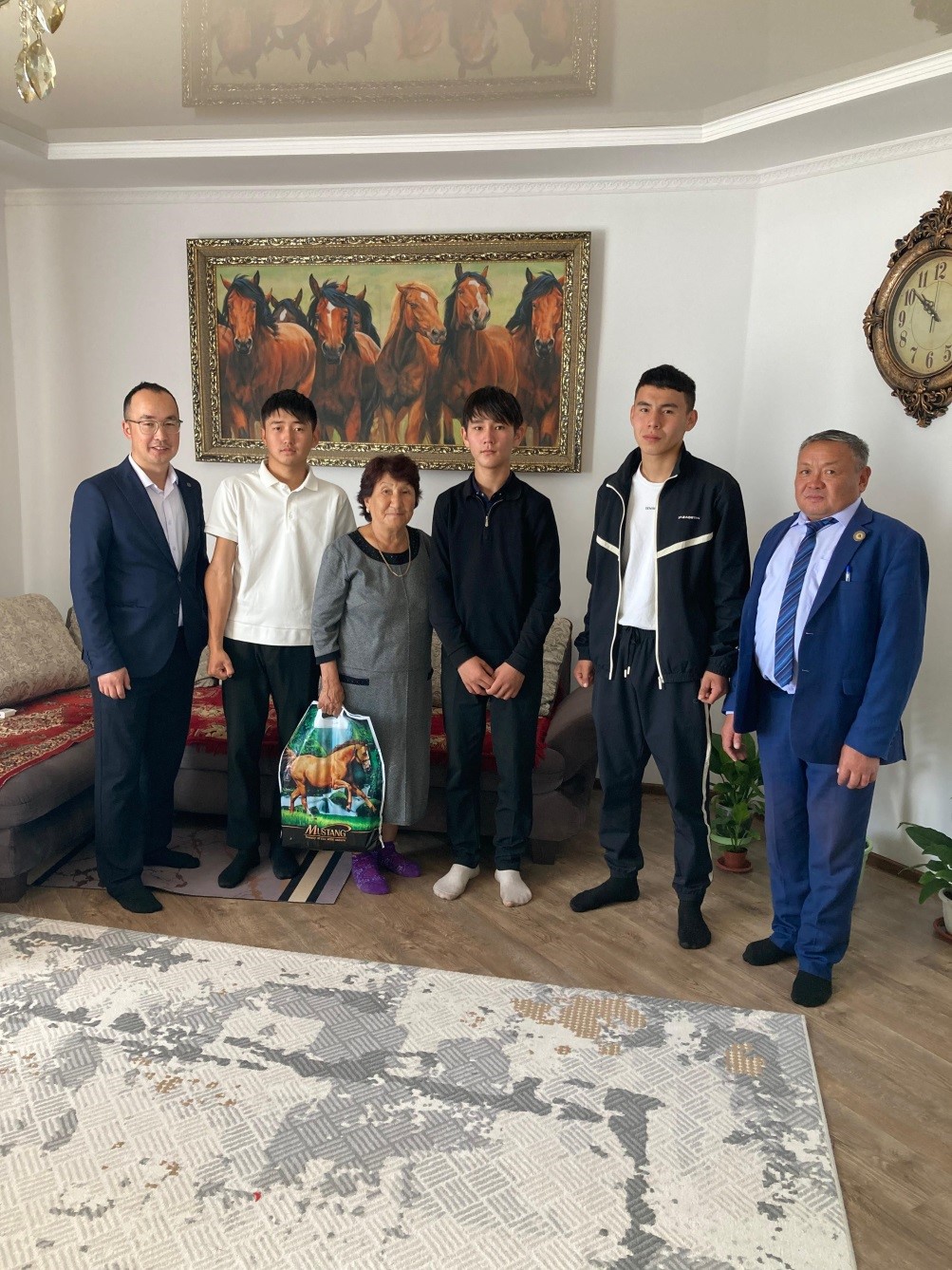 Қазыналы қарттар күніне орай және ардагер ұстаздарды Абай колледжінің кураторлары: Е.Ногатаев. С.Мәлгаждарұлы. Ж.Есенғалиұлы. А.Қайратұлы және студенттер ұйыммен құттықтау сәттері.